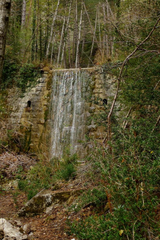 Poco más arriba del refugio se cruza el barranco de Añaza (1530m) y en su orilla izquierda se deja el GR11 para seguir el barranco (oeste). Al ver que el barranco se divide en dos la senda hace un zigzag a la derecha para superar un resalte rocoso, luego una amplia curva a la izquierda pasando bajo la cascada de la fuente de Añaza (1780m 1h53′).