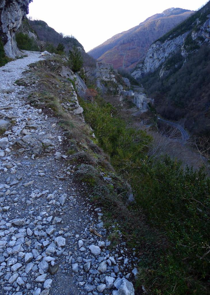 Camino tallado en la pared calcárea de la garganta del Infierno (Gorgues de l’Enfer) con el fin de bajar los troncos de árboles que se necesitaban para hacer mástiles de barcos en el siglo XVIII. Hoy lo podemos disfrutar como una ruta montañera fácil y, dese luego, espectacular. Aprovecho también para salir un poco del camino y explorar la senda que baja al puente Trungas y el que se dirige hacia el Soum de Mondaut.