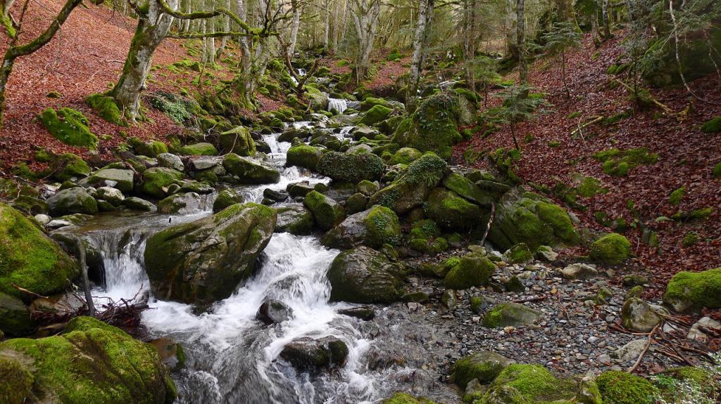 Desde la bifurcación se asciende en dirección N por hayedo hasta otra bifurcación (1225m 1h19′). De nuevo la ruta sigue a la izquierda pero yo me voy a la derecha por un camino bien marcado que llega a la borde Passette (1230m 1h34′), y más adelante cruza el barranco Pour Mourt (1236m 1h41′), todo entre preciosos hayedos y arroyos con cascadas.