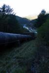 Desde Lafortunada se asciende 1 km hasta el pueblo de Badaín, donde aparco en una zona ancha antes de llegar a la iglesia y hay un cartel que indica el camino (Badaín 725m). En seguida hay un desvío hacia los Chorros y Fuente Fornos, yo continúo por el GR que va hasta Saravillo. El camino se convierte en pista (790m 0h08′) y se pasa por debajo de la tubería forzada de la central hidroeléctrica (836m), continuando de nuevo por senda en el pinar.