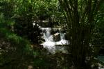 Cruzando la carretera se pasa el puente sobre el Noguera de Tor (1005m 3h43′). Subimos hacia el barranco de Saraís. Tras cruzarlo por un puente (1075m 3h56′), la pista principal continúa pero nosotros creemos que debemos tomar una desviación a la derecha, aparentemente buen camino, para seguir ascendiendo junto al barranco. Es una bonita parte de la travesía, con bosque y agua, pero el camino desaparece y tenemos que apañarnos para trepar por el inestable suelo boscoso hasta que salimos al camino correcto (1230m 4h41′) muy cerca del pueblo abandonado de Saraís (1320m 4h52′).