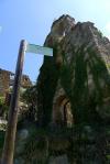 Se siguen varias señalizaciones: carteles, postes con la punta amarilla, postes de senderos de la Ribagorza románica, y marcas de GR en la parte final. Sin embargo en algunas zonas son sobreabundantes y en otros puntos confusos no hay nada.