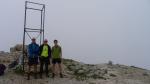 Después de un bifurcación (1900m 1h35′) hay un paso junto a la roca equipado con un corto pasamanos tras el cual tenemos que atravesar un túnel (2055m 1h51′). Avanzamos por pastos hasta otra bifurcación, Sella Incudine (2085m 1h58′), y dejamos a nuestra derecha una enorme edificación en ruinas, Cogolo Alto. Continuamos fácilmente hasta la Cima Palon (2232m 2h14′) envueltos en la niebla.
