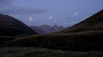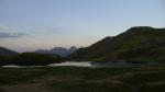 Salgo del aparcamiento superior de Astún (1728m), cruzando el barranco de Escalar y tomando el camino que sube hacia el N. Se pasa la toma de agua (1825m 0h11′) y asciendo hasta el cruce de caminos donde alcanzo el ibón de Escalar (2080m 0h36′). Superado el ibón y girando a la derecha (E) se llega al col des Moines (2168m 0h51′) donde me esperan unas imponentes vistas del Midi d’Ossau al amanecer.