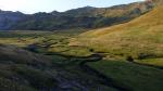 Descendiendo por la vertiente francesa, sigo el GR108 desviándome hacia la derecha (2080m 1h07′) en el entorno del lac du Plaa de las Basques que es un conjunto de meandros. Por zonas más o menos llanas y lacustres fijo mi dirección a la izquierda del pico Paradis, llegando a un colladito (2011m 1h27′) entre el pico y el lago. Siguiendo algunos hitos tomo unas gradas de hierba que superan un par de escalones rocosos y rodean el pico por el N. Ésto me da acceso a un suave lomo NE con un gran hito por el que el ascenso al pico es fácil (Pic Paradis 2129m 1h45′).