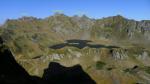 Desciendo la misma senda senda hasta el lomo herboso (2080m 3h16′) siguiendo al N a la orilla oriental del lac de Bersau (2081m 3h31′). Lo rodeo por el N y voy visualizando la ruta hacia el pic Larry: unas palas de hierba hasta superar un espolón rocoso y girar a la derecha por encima del espolón, encarando una canal herbosa que da acceso a la cresta oriental del pico. Llego así al pic Larry (2337m 4h04′).