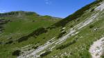 Volvemos por el mismo camino hasta el collado de la dolina y aquí tomamos otros sendero que faldea el Trentin por el SE. Terreno calcáreo con características de paisaje más mediterráneo. Conectamos con la Porta Kempel (2144mh56′) y tomamos la senda que faldea bajo la vertical pared N del Portule hasta conectar con la ruta de subida en la bifurcación (2030m 4h30′) de la cresta del Portule. Ya sólo nos queda bajar a la Porta Renzola, de ahí a la pista y a la Malga Larici(1640m 5h11′).