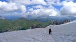Yo subí la Marmolada solo en el año 98, bajando por la vía ferrata al refugio Contrin para después continuar en travesía otros tres días hacia el sur, hasta San Martino di Castrozza. De la ascensión recuerdo un glaciar mucho más abierto de grietas, puesto que era agosto, y un descenso de la larga ferrata con tormenta que no se lo deseo a nadie.
