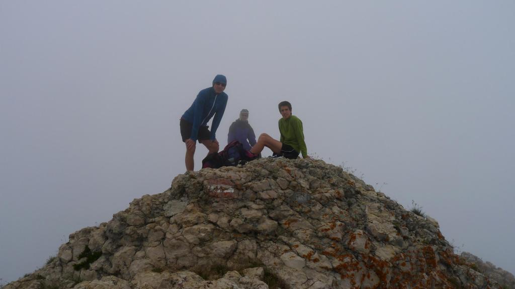 Por la ladera norte y este tenemos referencia de que hay una vía ferrata, pero por el lado que hemos subido no encontramos ninguna dificultad. Cuando bajamos vemos a nuestra izquierda una senda completamente encajada en la roca que pensamos que irá hacia la ferrata. Nosotros bajamos por la misma ruta hasta el coche (1555m 2h38′).