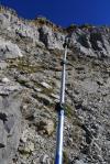 Me uno al GR11 (1697m 0h33′) y lo sigo hasta abandonarlo (1750m 0h40′) antes de cruzar un barranco pedregoso seco y tomo un vallecito (NE) que luego se divide hacia la Garganta de Aísa, a la izquierda, y hacia Rigüelo, a la derecha, tomando esta última dirección. A mi izquierda quedan las imponentes paredes que caen al estrecho barranco de la Garganta de Aísa. A mi derecha el refugio Rigüelo junto al GR11.