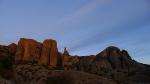 Se avanza siempre por la pista principal hacia el E hasta encontrar una barrera (910m 0h42′), que se pasa para seguir por la pista de la izquierda. Una nueva bifurcación (940m 0h47′) en que nos dirigimos a la izquierda (N). Finalmente otro desvío (950m 0h59′) donde dejo la pista principal y tomo otra a la derecha, pero no la senda con hitos que hay más a la derecha, sino una pista menos pisada por el centro, sobre un lomo pedregoso.