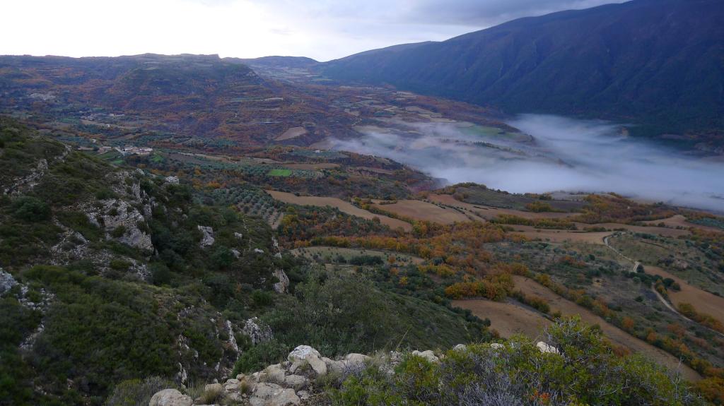 Al norte de la sierra del Montsec se van enlazando toda una serie de sierras de camino al Pirineo. Escogemos una excursión no muy exigente cerca del pantano de Terradets, la ruta es circular con principio y fin en el bonito pueblo de Llimiana, construido como fortificación sobre un otero y dominado por la interesante iglesia de Santa María. Pasamos por varias ermitas y un castillo, con la máxima altura en las faldas de la sierra dels Obacs.