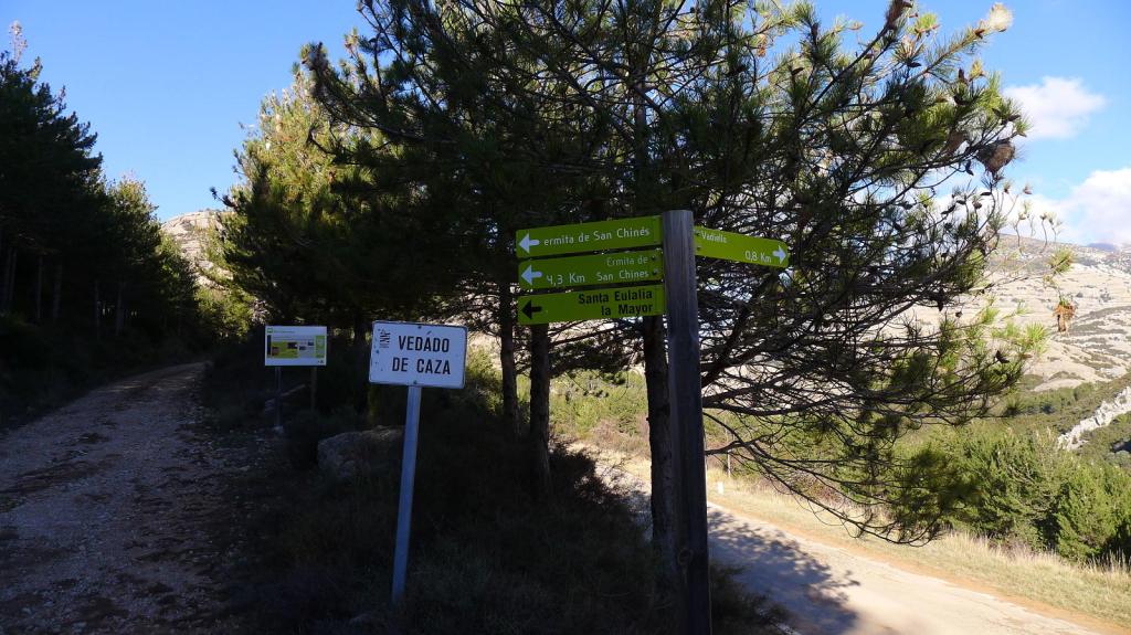 Dejo el coche en el aparcamiento que hay en una curva sobre el barranco de Vadiello (705m) antes de llegar a las casas que preceden a la presa. Desde allí sale una senda señalizada hacia el oeste bajo las paredes de Ligüerri. Se cruza el barranco y se continúa por el pinar hasta un gran depósito de agua de piedra con abrevadero (780m 0h17′). Allí empieza una pista que se bifurca (810m 0h26′) y hay que seguir a la izquierda, dejando a la derecha el camino a San Chinés