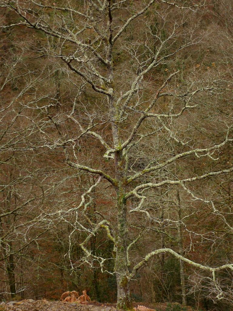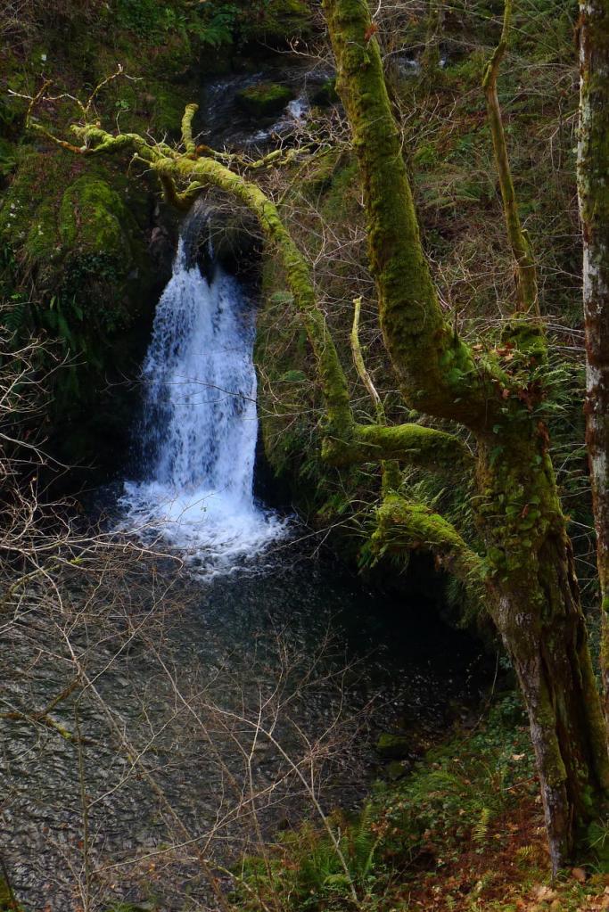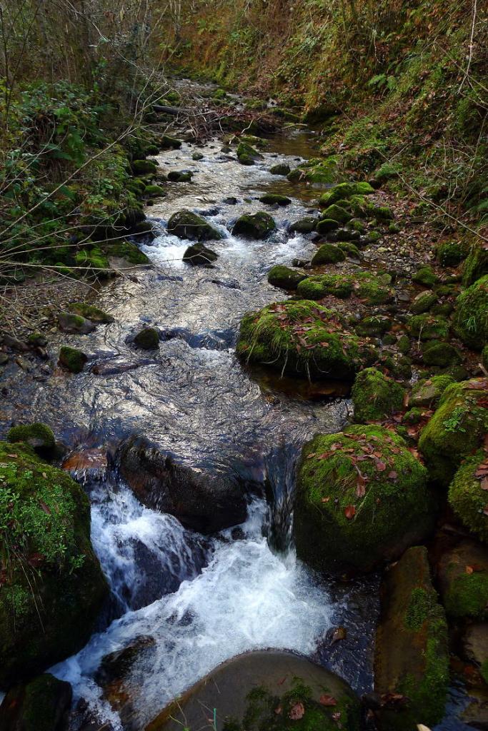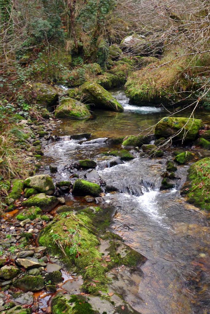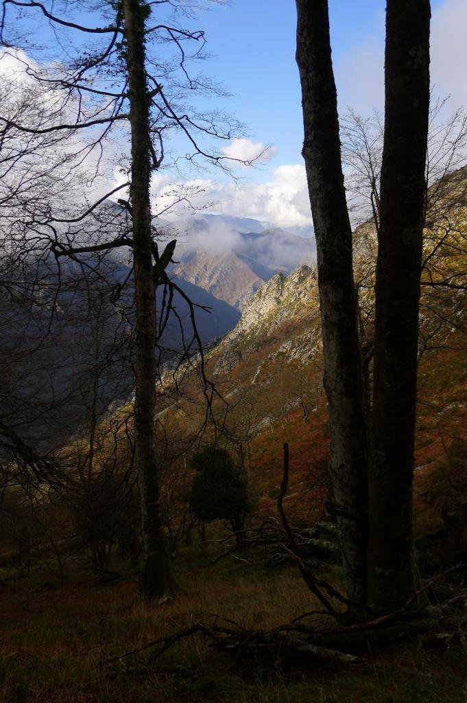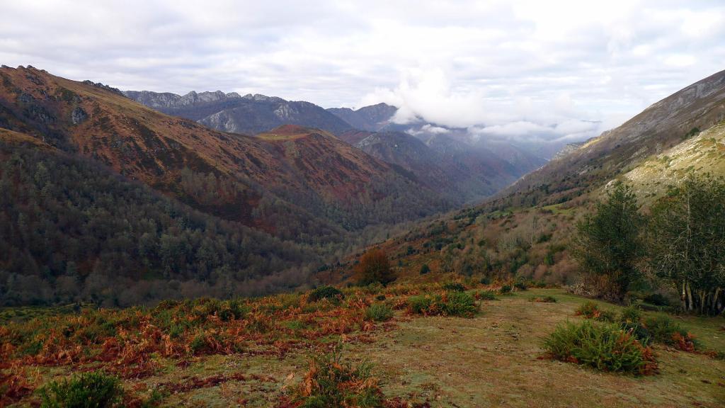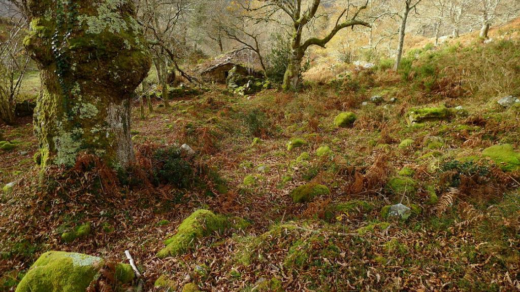 Pasamos junto a una cabaña en ruinas (595m 4h01′) entre troncos musgosos y la pendiente se suaviza. Después, en la majada Degoes, la senda se va hacia la derecha pasa sobre un barranco, y discurre paralela al río Infierno en dirección a la Pesanca por la orilla derecha. Finalmente pasamos por un puente a la otra orilla en el cruce el Muñizón (435m 4h19′) y ascendemos por la pista 1km. hasta el coche (540m 4h37′)