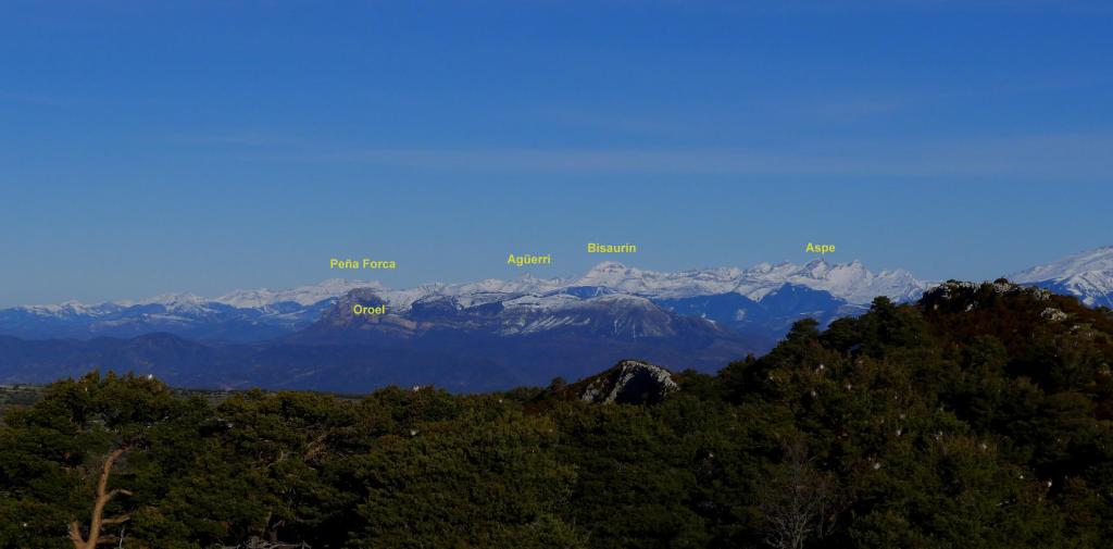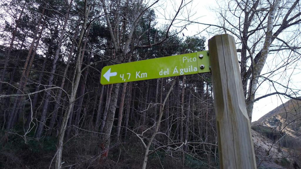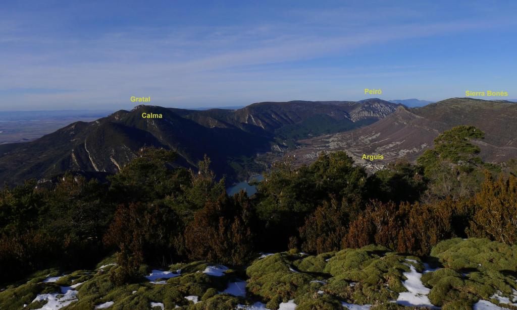 La Sierra del Águila, entre los embalses de Arguis y de Belsué, es una más del complejo sistema de sierras exteriores que separan Huesca del Pirineo. Su espolón sur, el pico del Águila, sirve de asentamiento de antenas de comunicaciones. Se accede por una carretera estrecha desde el viejo túnel de Monrepós, pero desde el embalse de Arguis hay una agradable senda de subida. Sin haberlo preparado hoy completo una travesía circular regresando precisamente por el viejo túnel.