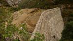 Allí empieza un camino sobre el seco embalse y bajo verticales paredes abriéndose paso mediante varios túneles y terminando en la presa de Belsué (895m 2h16′), desde la que se domina el más abierto valle del Flumen. Nada más pasar la presa hay unas escaleras a la izquierda que suben al refugio de Nuestra Sra. de Belsué (1005m 2h29′).