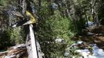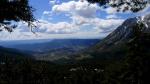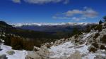 La pista cruza el barranco Canals donde hay un abrevadero (1560m 0h28′). Dejo la pista y tomo una senda por encima del abrevadero para ascender por la sombra de los pinos. Más arriba otro cruce (1720m 0h45′), a la izquierda es la senda a Fuente Canals, sigo a la derecha dirección Puerto de las Aras. Todos los cruces están señalizados con carteles y toda la senda jalonada con marcas amarillo-blanco. Sólo me queda el tramo final para llegar al puerto de las Aras (1900m 1h03′), donde ya encuentro nieve abundante y una gran vista al sur al valle de Lierp y al norte a las montañas del valle del Ésera.