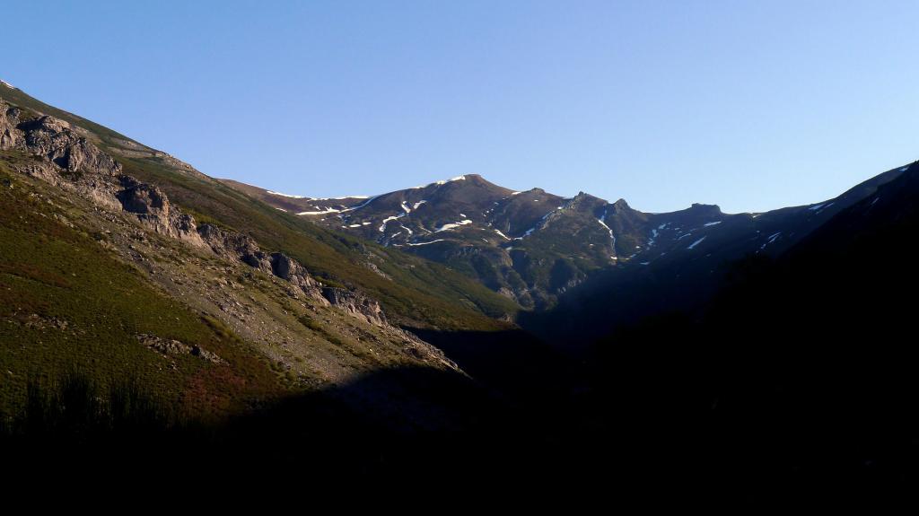 Continúa un sendero que vuelve a cruzar el arroyo (1660m 1h28′). El arroyo del Valle del Cuadro se encajona a nuestra izquierda mientras nosotros ascendemos por un lomo de prados (1700m) siguiendo hitos. La senda parece perderse y hay hitos en dos direcciones (1765m), pero en todo caso la dirección es norte por pendientes fuertes y fuera de sendero. Encontramos por fin una senda (1925m 2h05′) que se va hacia el NO y luego gira a la derecha suavizando así la subida.