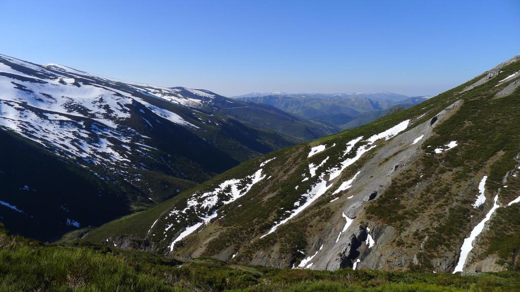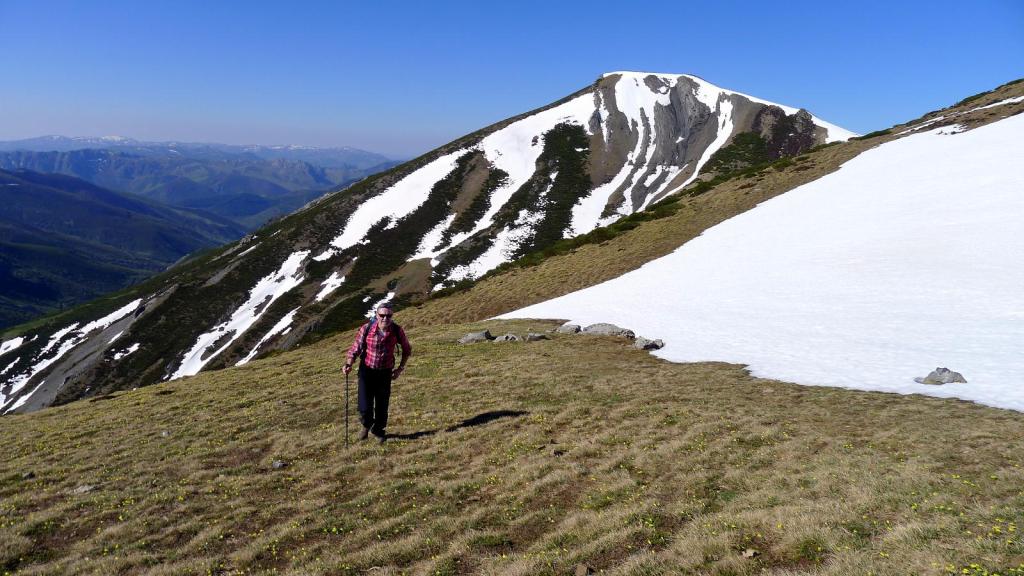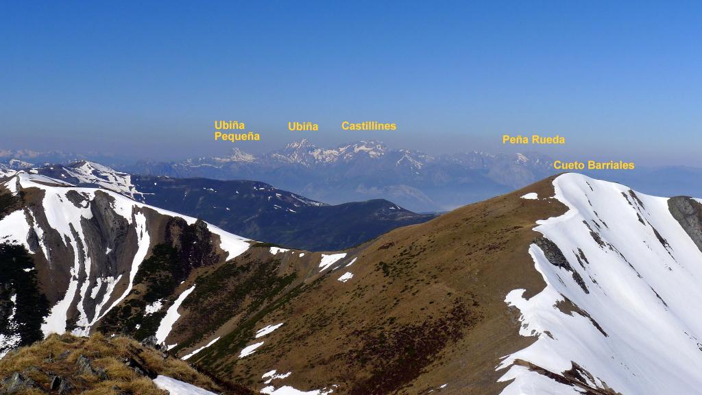 En el cordal fronterizo entre el concejo de Aller (Asturias) y la comarca del Alto Bernesga (León) el punto más elevado es el pico Etorbín. El acceso normal es por la vertiente leonesa, desde el pueblito de Tonín, a lo largo del valle del Arroyo Tonín, con una larga aproximación por pista, luego por sendas y finalmente por pendientes más fuertes con difusos senderos hasta la cima, que está a la vista prácticamente durante todo el recorrido. La panorámica es muy amplia de toda la montaña asturiana y también se llega a ver el Espigüete de la montaña palentina. Opciones factibles desde la cima son seguir la cresta oeste y SO o bien la cresta SE y sur, con suaves cumbres que superan los 2000m, pero hay bastante nieve, así que descendemos por la misma ruta de subida, salvo una pequeña variante.