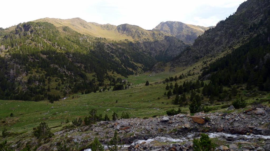 Se traspasa una portilla de madera (1782m 1h01′) y un cartel de PR (1855m 1h13′) indica «Codoñera». De inmediato encuentro el ansiado puente (1860m 1h18′) y el camino se acerca ahora a la orilla derecha de un barranquito secundario, llegando a una amplia zona de prados, la Plana del Cabo (1945m 1h28′), donde se encuentra, un poco alejado de mi ruta, el refugio de Tringoniero o del Cabo.