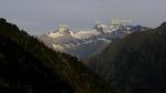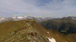 El acceso al primer pico lo visualizo por el hombro con rododendros, hierba y piedrilla que llega a la izquierda (cresta NE) del pico Oriental. La cresta desciende un brecha y después asciende directamente hacia el pico por afilada roca esquistosa, bastante segura, ningún paso difícil, pero siempre manteniendo el esfuerzo y la atención. Pico Mener Oriental (2451m 3h10′).