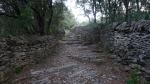 A la entrada de Rodellar (750m) hay un pequeño aparcamiento. Antes de entrar en el casco del pueblo un camino a la derecha indica Virgen del Castillo y Cheto. Me introduzco por un sombrío camino bordeado de muretes de piedra, entre encinas y quejigos, que asciende a la aldea de Cheto (810m 0h11′). En la siguiente desviación voy a la izquierda (833m 0h20′) hacia los pozos de Bagüeste; aquí llegaré en el descenso por el camino de la derecha. Después a la derecha (837m 0h26′) hacia Paniebla.
