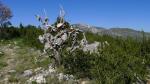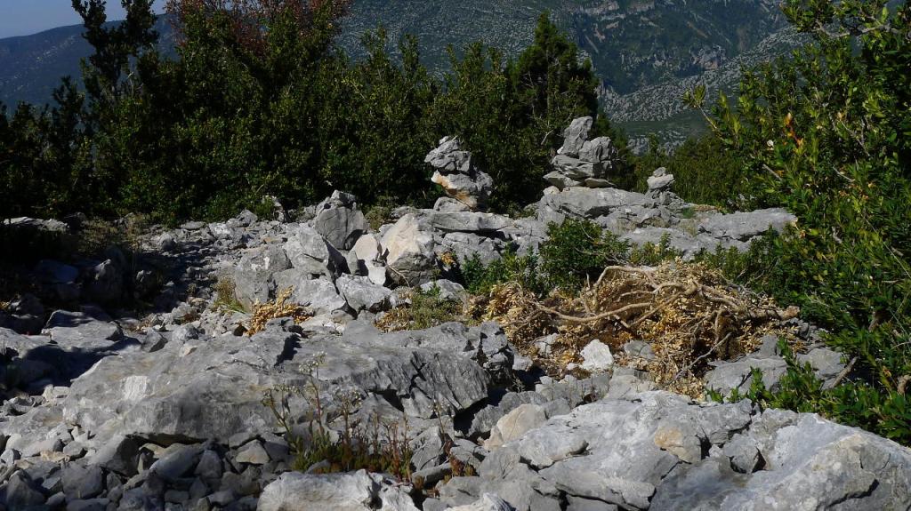 Desciendo por el mismo camino y casi en los pozos de nieve tomo la senda al S por la ladera occidental de la cresta. Cuando estoy bajo el Larizora giro a la izquierda para subir directo por la zona que encuentro un poquito más despejada de erizones . Paco Tiesto (1563m 3h10′).