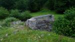 El descenso es directo a la derecha (E) por la vaguada de hierba, hasta cruzar el arroyo y tomar una difusa senda (1680m 5h34′) que va bordeando el límite superior del hayedo y se va haciendo poco a poco más clara. Aún se pierde un poco en algunos lugares antes de llegar a la abandonada cabaña de Cayalatte (1540m 5h47′), donde tengo que atravesar un campo de hortigas y retomar la senda que se oculta entre los helechos.