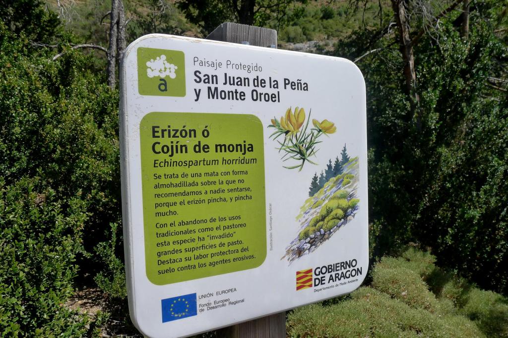 Dejo el coche justo antes del km.11 de la carretera que va de Jaca a Bernués (1045m). Aquí comienza una pista bien señalizada, pero se puede ir en coche hasta una barrera canadiense (1012m 0h16′); al otro lado hay un depósito de agua para incendios y una fuente.