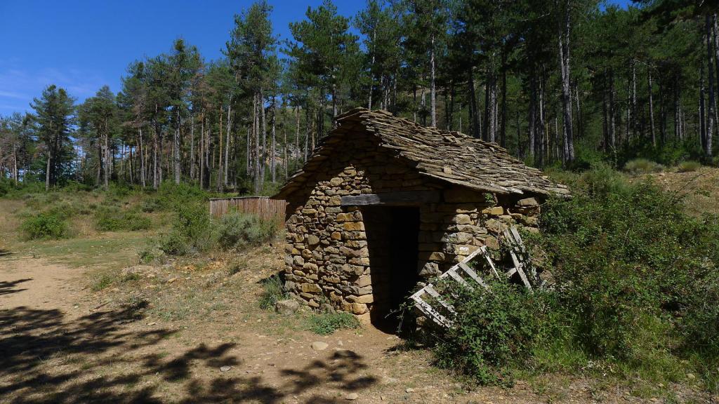 Por esta pista llego hasta el vado junto al barranco (1045m 1h02′) donde se junta con el camino de la Pardina de Ordolés y sigo recto. Después tomo una bifurcación a la derecha (1060m 1h05′) que asciende por un lomo y llega hasta una cabaña en ruinas (1190m 1h24′). Hay un cruce de caminos, sigo recto.