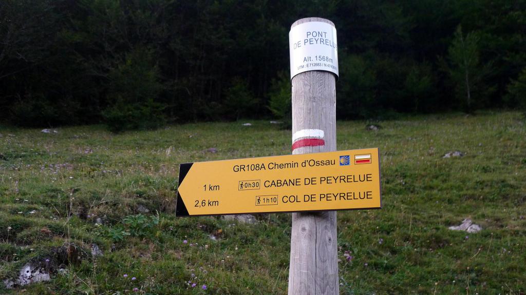 Aparco junto al pont de Peyrelue (1570m), a 3,5km del puerto del Portalet. Sigo el sendero indicado con un cartel como GR-108-A, que asciende con amplios zigzags. Luego empieza a llanear en dirección S.
