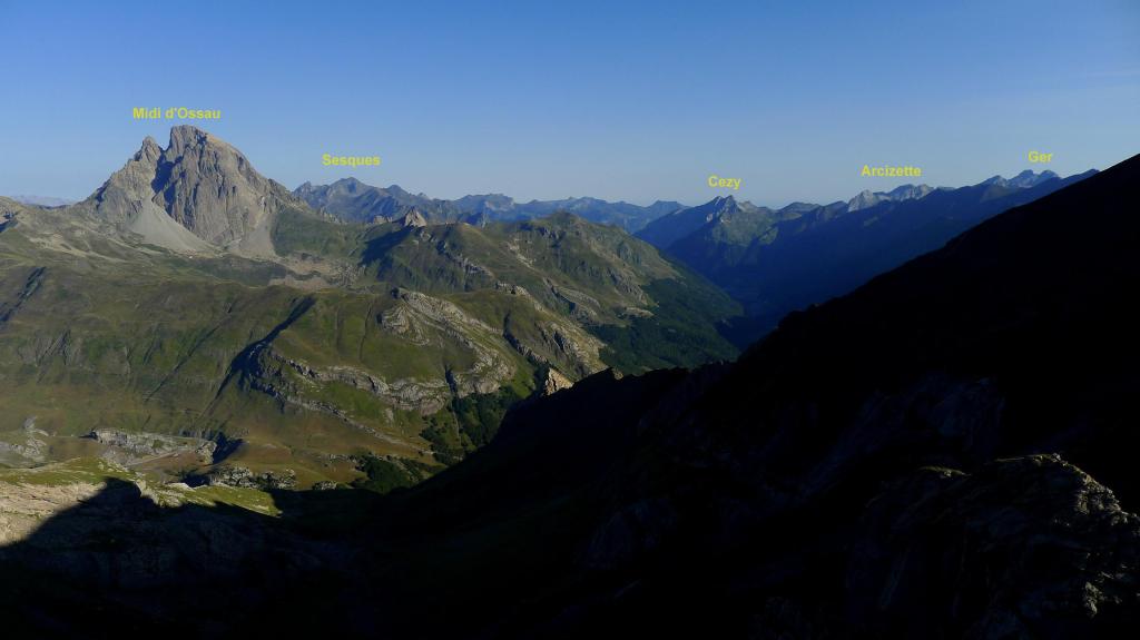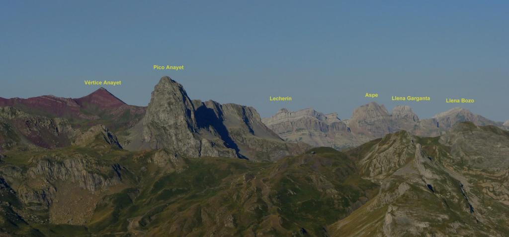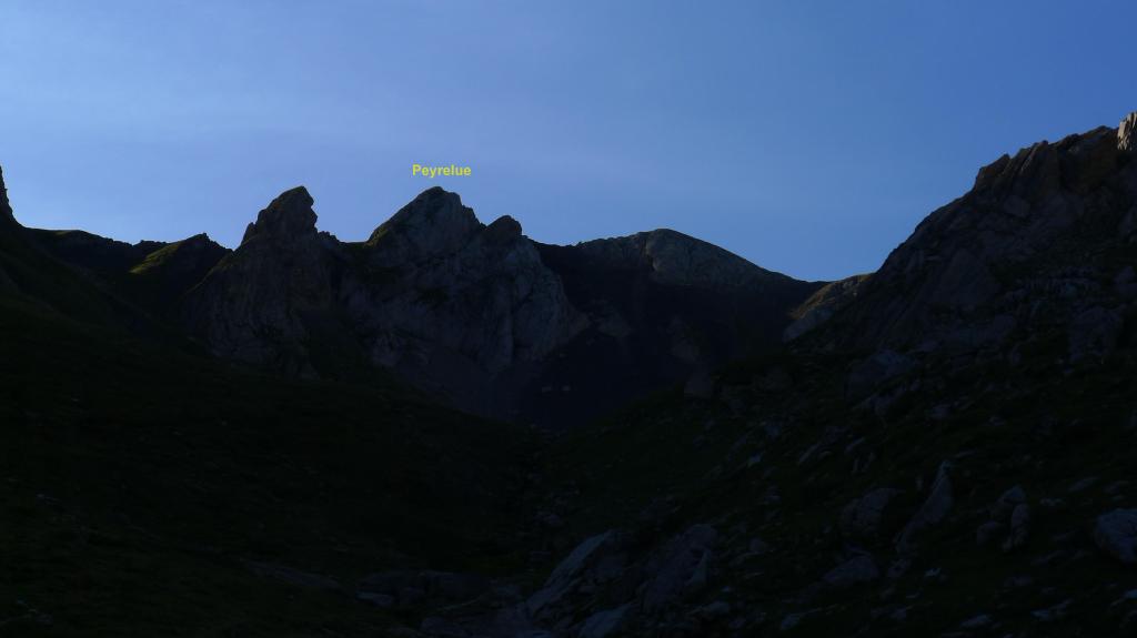 Desde el puerto del Portalet se extiende una cresta hacia el NE, hasta el pico Arriel, con toda una serie de puntas entre las que destacan el Peyrelue, Ouradé, Diente de Soques, Soques y Sobe. La más cercana al puerto y fácilmente accesible es el Peyrelue. El camino que sigo se separa de la ruta normal porque al paso por dos cabañas salen mastines; ésto hace que vaya la mayor parte del recorrido fuera de senda, pero el terreno no presenta dificultades ya que son fundamentalmente laderas herbosas de inclinación moderada.