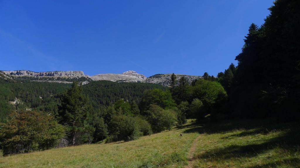 Al final, junto a la pared de la izquierda, desemboco en el valle de la Espata (1845m 5h09′), frente al ruinoso refugio de Bozuelo. Siguiendo el valle se llega al refugio de la Espata y ya de nuevo hasta el aparcamiento de la fuente del Paco (5h54′)