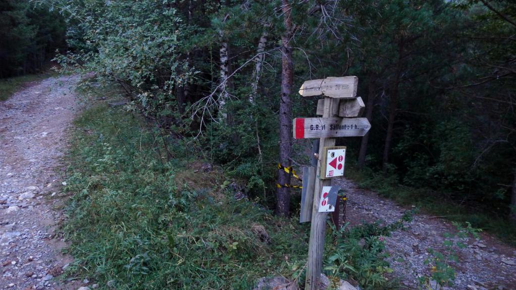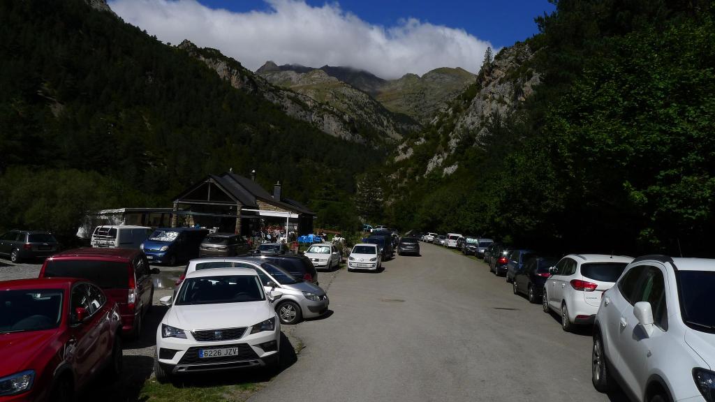Una estrecha carretera sube desde Sallent de Gállego hacia la Sarra. Aparco unos 200m después de pasar sobre la presa (1437m). Tengo que tomar la pista que queda detrás; sale por la orilla izquierda de la presa hacia el sur. Enseguida hay que ir por la bifurcación de la izquierda hacia el Ibonciecho, la de la derecha baja a Sallent.
