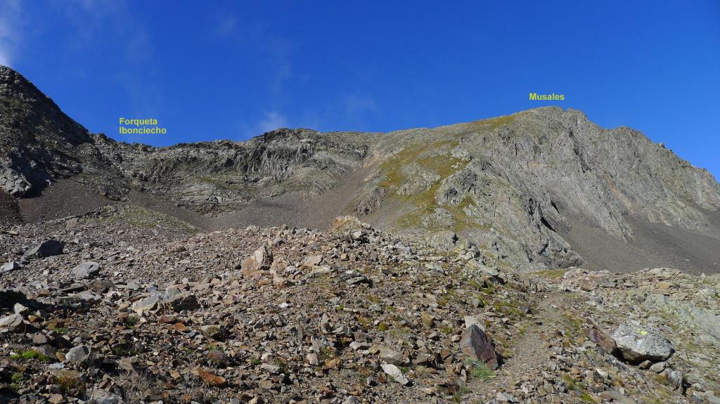 El Musales es un pico que corresponde a la cadena que cierra por el sur el valle de Repomuso. Las vistas de los picos fronterizos que cierran por el norte y y por el este dicho valle son espectaculares, aunque hoy las nubes procedentes de Francia tapaban por momentos la visión, en un día muy frío con viento en las crestas. La ruta presenta un recorrido bonito y variado, no obstante el descenso por el barranco de Aguas Limpias se hace largo y está excesivamente concurrido. El único paso técnico son los primeros metros de descenso de la Forqueta del Ibonciecho hacia el norte.
