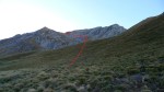Continuamos la cresta, que se estrecha y tiene caída, pero no es difícil, hasta el espolón occidental. En el descenso habíamos pensado ir por el collado Chornaleras, pero parece un recorrido bastante largo y volvemos por la misma ruta de ascenso. La pista en solitario habría sido un poco pesada, pero con la conversación no parece tan larga. (Aparcamiento 1230m 5h37′)