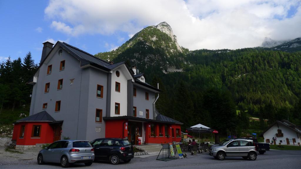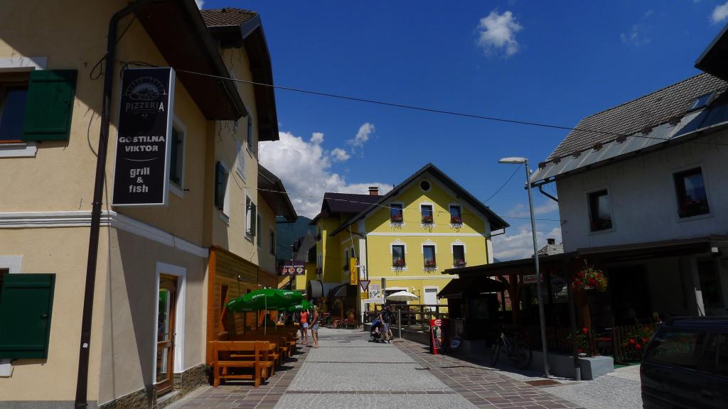 Ya en Sella Nevea seguimos la carretera hacia el norte hasta Tarvisio, desde donde nos dirigimos a la frontera con Eslovenia. Paramos en Kranjska Gora, un pueblo con ambiente de montaña, tranquilo pero mucho más animado que los de Italia. Continuamos a Mojstrana, nos alojamos en el albergue Jozl, en una habitación con 5 camas para los 3 solos. Toca lavar algo de ropa y esperar a que pase la tormenta y la lluvia que da paso a una tarde clara. Nos preparamos para el Triglav, que nos espera mañana.