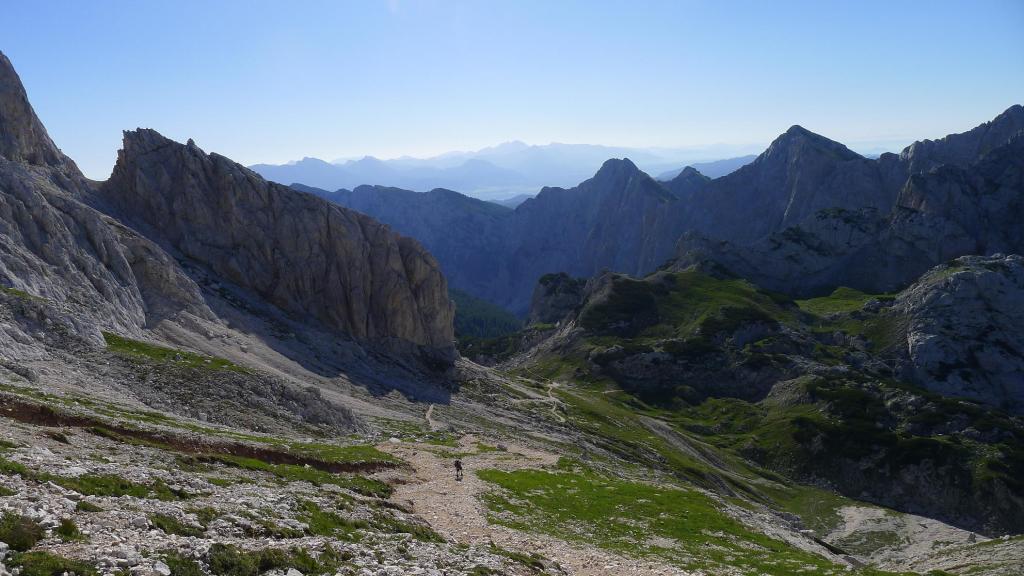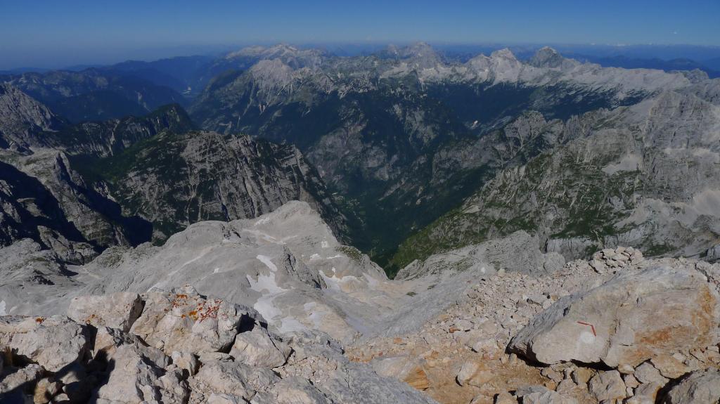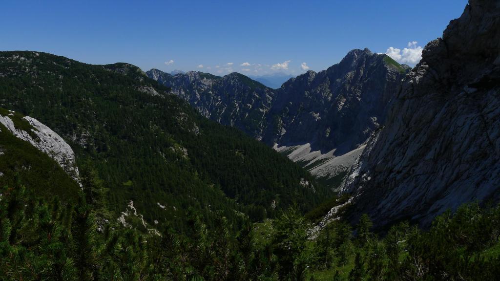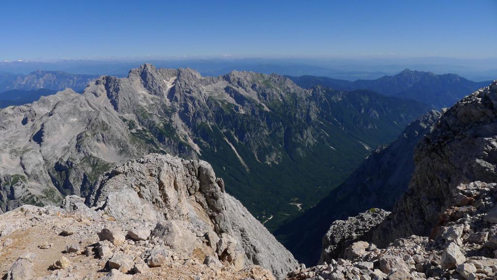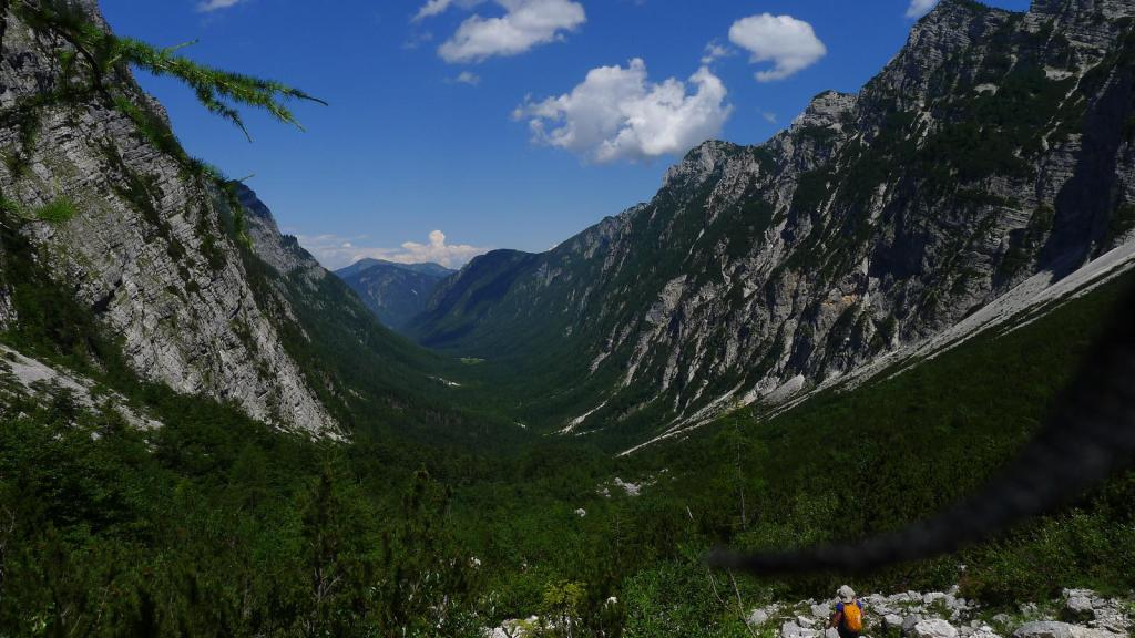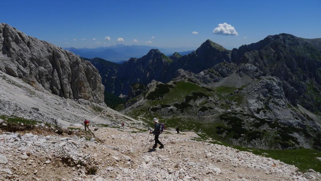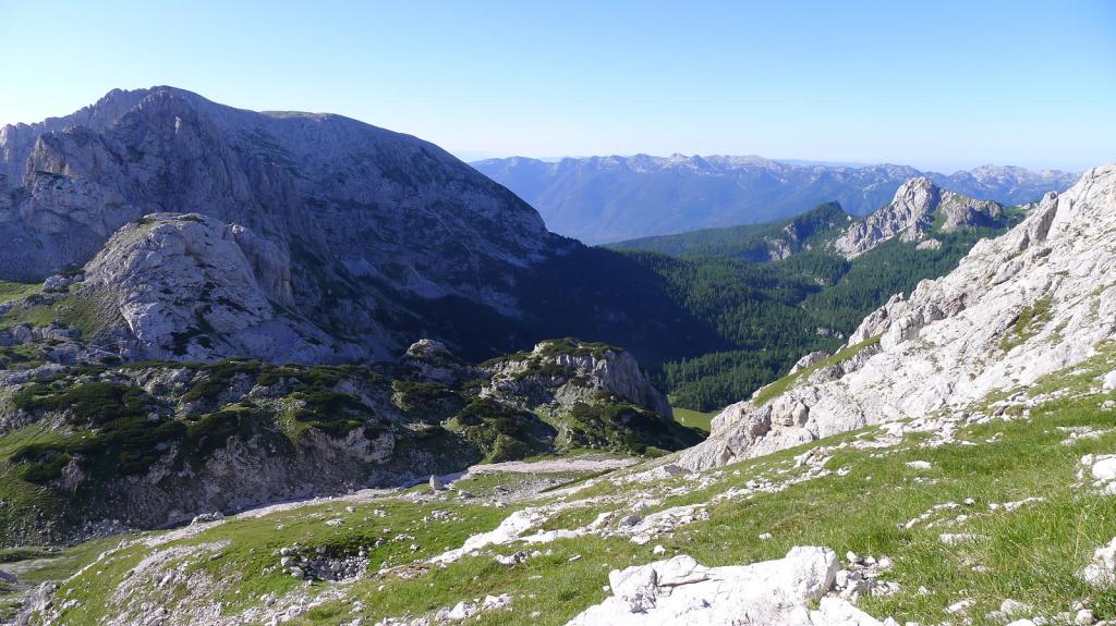 Es una prominente montaña caliza a la que se puede acceder por varias rutas que recorren los valles que la rodean. Nosotros lo haremos por el valle de Krma, una fantástica y dura ruta por su longitud y desnivel; requiere un buen nivel físico y técnicamente no es difícil pero hay que tener en cuenta que los tramos equipados corresponden a zonas de elevada exposición. Aunque tenemos referencias de que se puede ascender sin material técnico, decidimos llevar casco, arnés y disipador, por si acaso. Solamente usaremos el casco para prevenir la caída de piedras, pero supongo que en caso de terreno húmedo no habríamos dudado en asegurarnos a las sirgas.