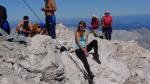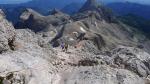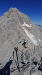 Estamos ya en plena cresta, la sirga sirve para agarrarse e ir más seguro, pero ningún paso es especialmente difícil. La pendiente es siempre exigente. Hay que superar la cumbre secundaria del Mali Triglav (2739m) para afrontar el último esfuerzo. Se acumula algo de tráfico en la cresta, 2 o 3 veces hay que parar para dejar paso, sobre todo a los que van atados a la sirga (mayoritatiamente grupos con guía). También hay gente que sube solo con casco, sin mochila ni nada.