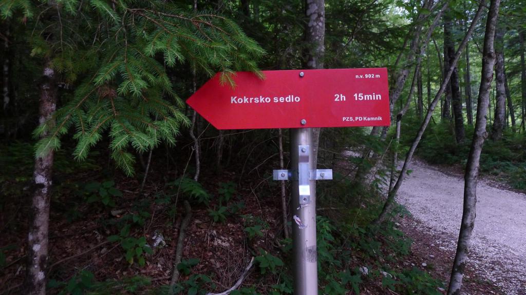 Desde Kamnic seguimos la carretera hacia el norte, hasta una especie de refugio-hotel-área turística llamada Kamniska Bistrica. A partir de ahí continúa una pista, en una bifurcación se sigue a la izquierda y llegamos a un punto donde un cartel indica el inicio de una senda que se interna en el bosque a la izquierda hacia Kokrsko Sedlo, el collado donde se sitúa el refugio.