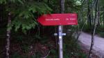 Cartel Kokrsko Sedlo (880m). Salimos ya tronando. Luego empieza a llover y los truenos suenan cada vez más cerca. El camino sube por un hayedo con fuerte pendiente. El chaparrón se va intensificando, solo nos queda apretar el paso, aguantar y esperar que no vaya a peor.