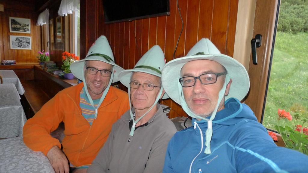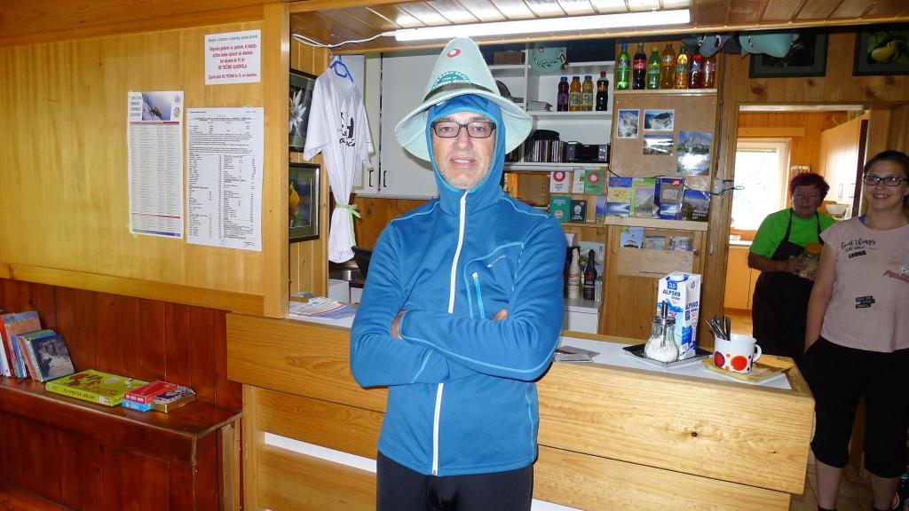 Nos introducimos por una amplia canal hacia el collado. Cuando el bosque se va abriendo también va dejando de llover. Llegamos al refugio Cojzova (1793m 1h27′). Es un agradable refugio sobre el mismo collado. Están remodelando los baños, hay un gran hogar donde secar la ropa, tenemos una habitación para los tres y una buena cena.