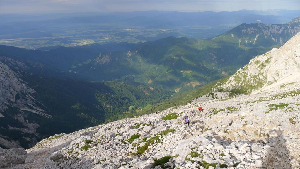 El Grintovec será el pico más oriental de nuestro viaje. Destaca por su gran prominencia (1706m) y parece ser un pico bastante visitado por los eslovenos; al descenso, el refugio está muy animado.