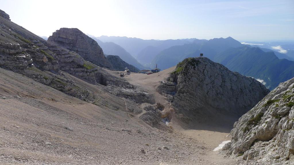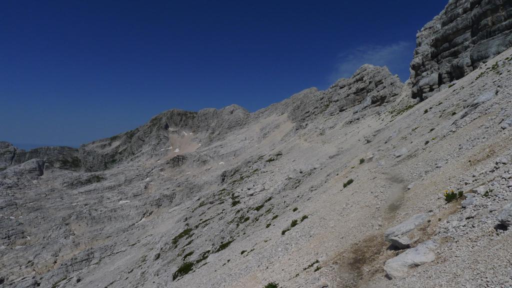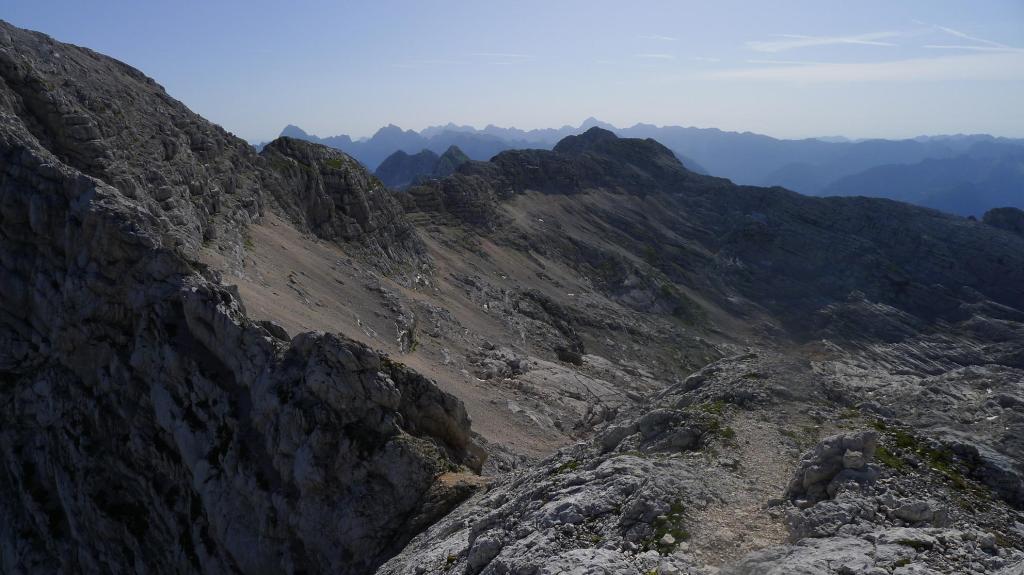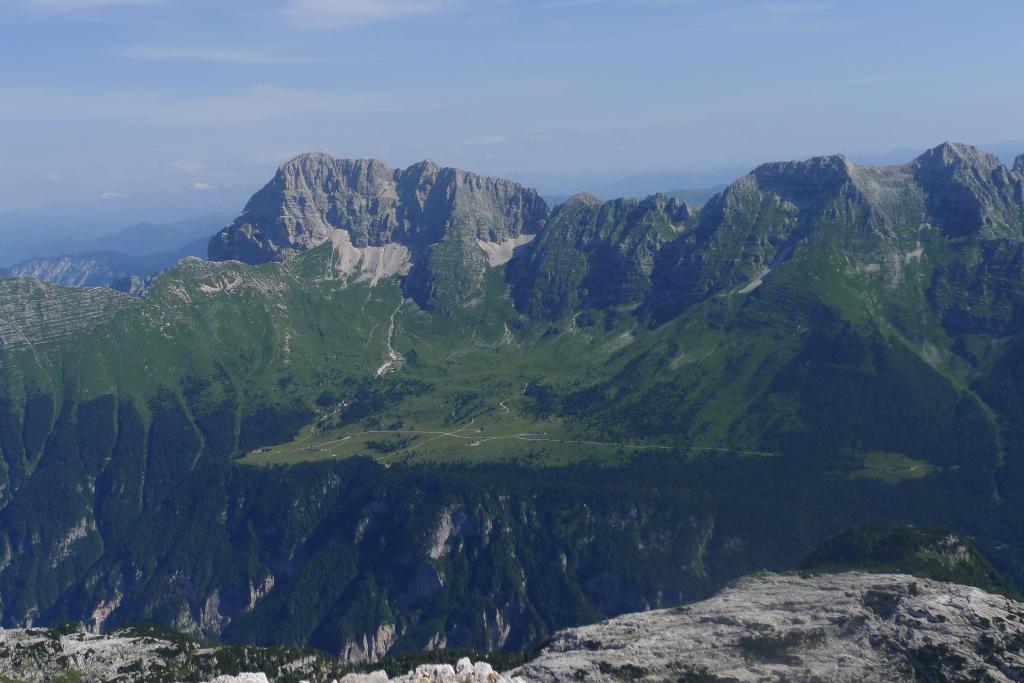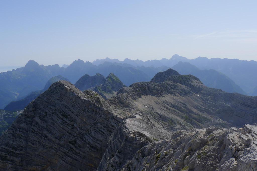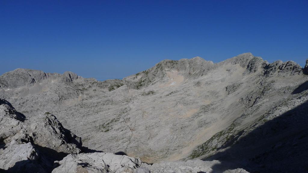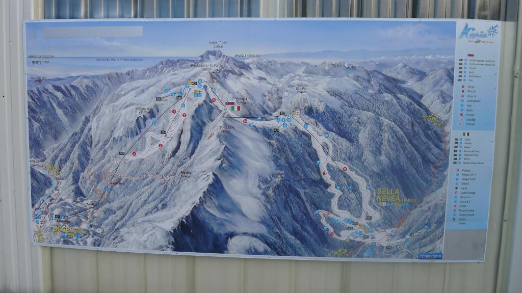 El macizo del Kanin es frontera entre Eslovenia e Italia. En sus laderas N están las pistas de esquí de Sella Nevea; en sus laderas S las pistas de esquí de Bovec. Ya pudimos observar estas rocosas montañas durante nuestra ascensión al Jôf di Montasio. Es el 5º pico más alto de Eslovenia y su prominencia son 1403m