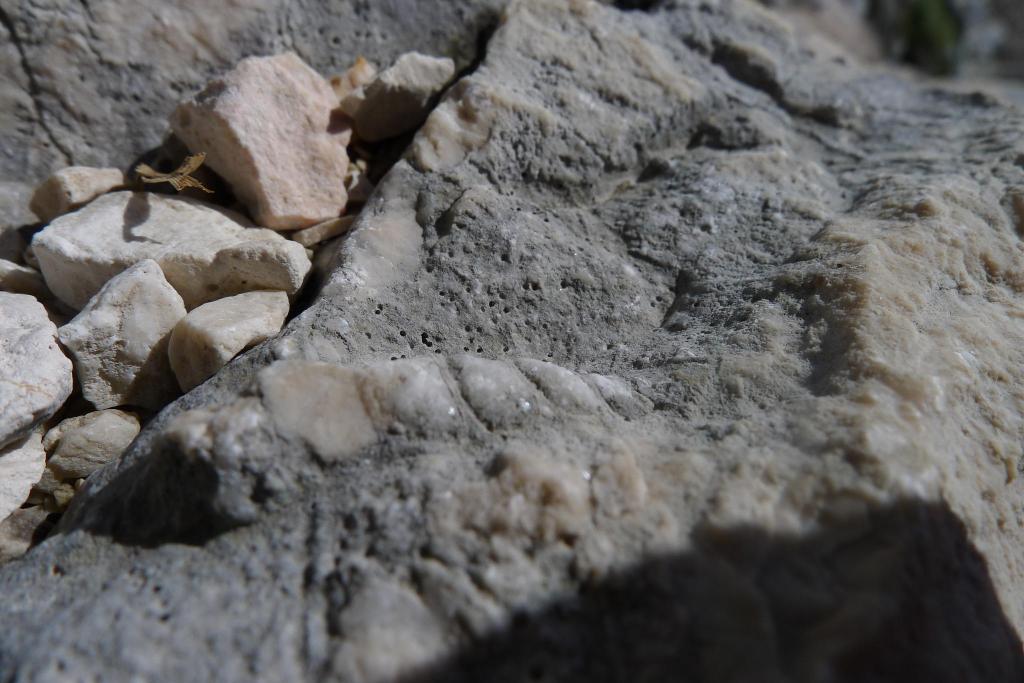 Entramos en plena pared de roca (2440m 1h06′) . Guardamos los bastones y avanzamos siempre con trepadas fáciles pero exigentes físicamente. Sirgas y clavos ayudan en los tramos más expuestos. La ruta va bordeando la cresta que queda a nuestra derecha (N), hasta que se accede finalmente a la cresta (2490m 1h18′) después de llegar a una brecha.