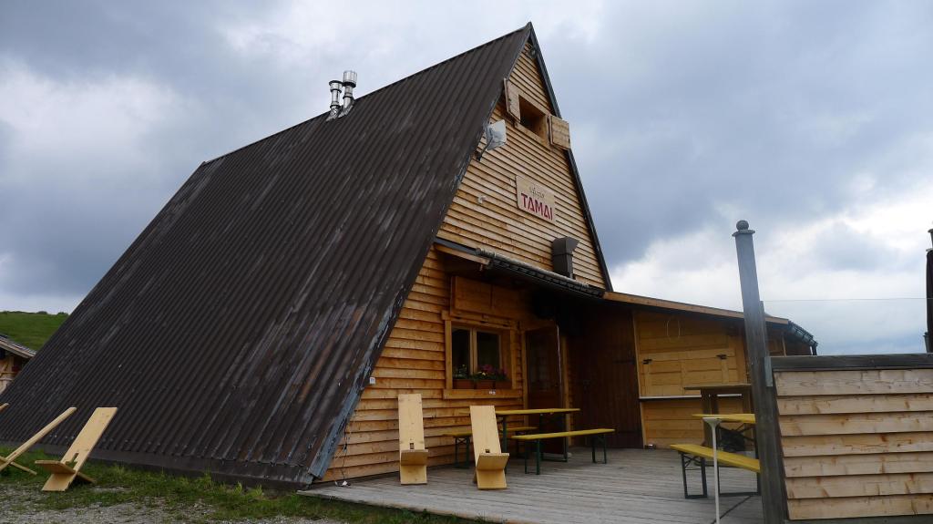 Por la tarde, con un tiempo nublado, salimos del refugio Tamai (1715m) y subimos por pistas y laderas de hierba a la cima del Monte Tamai (1970m 0h29′), donde hay una mesa de orientación. Regresamos al refugio (1715m 1h03′).