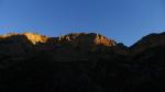 Asciende así hasta unirse al GR-18 cerca del collado (1498m 1h18′) y llegar a la cresta (1513m 1h20′). Ahora, un camino bien tallado bordea la roca por la izquierda, llegando a unos prados un poco confusos. Hay que seguir hileras de piedras en el suelo y escasas señales de GR. Pero la idea es seguir la cresta por su máxima pendiente hasta los lomos herbosos de la parte superior.