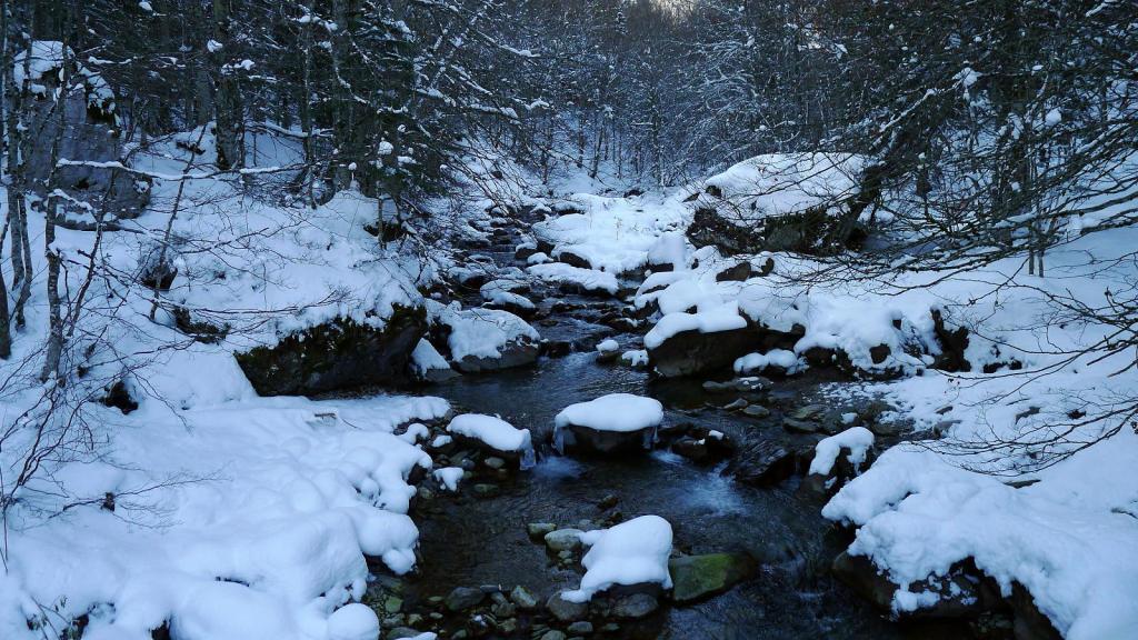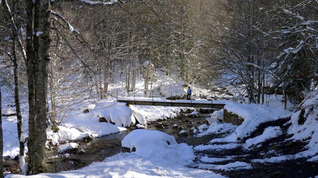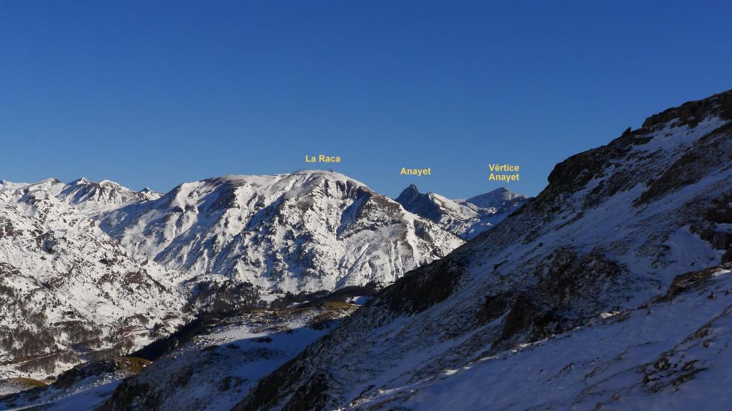 Ya tengo otra entrada antigua de subida con raquetas al ibón de Estanés. Es una subida cómoda y segura para pasar una buena mañana de invierno siempre que haya nieve desde el mismo aparcamiento. Se accede por la parte francesa de la carretera del puerto del Somport, en el km.119 hay una entrada para aparcar en una explanada, pero ahora hay que dejar los coches casi en la carretera porque la explanada está nevada. No es una excursión solitaria, pero también da gusto ver de vez en cuando cómo la gente se anima a hacer recorridos invernales para disfrutar de nuestro maravillosos Pirineo.