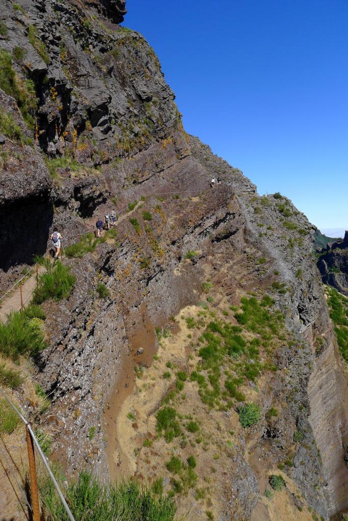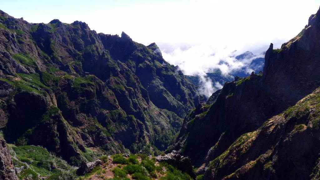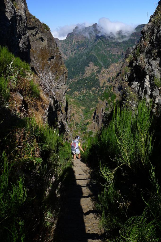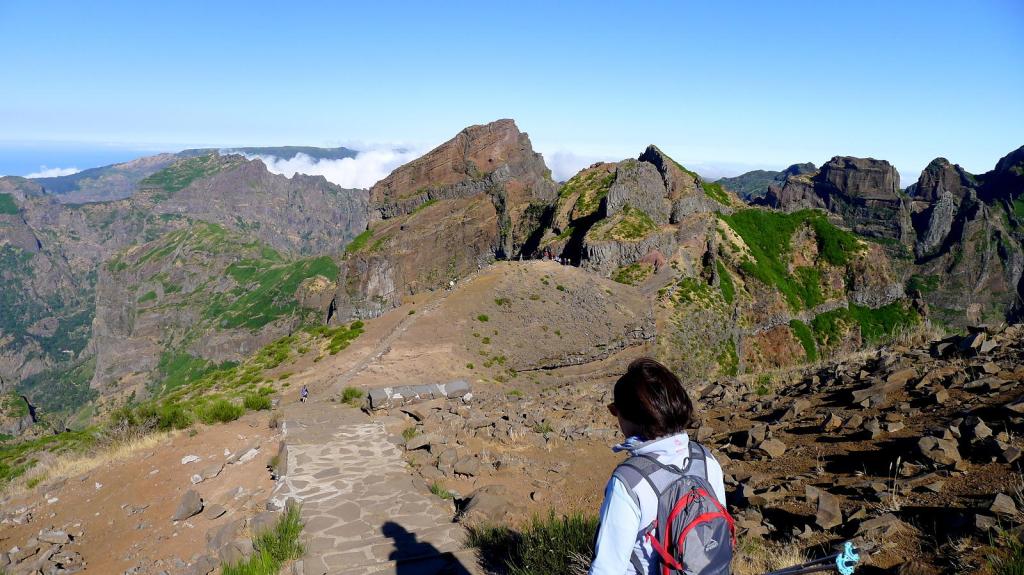 Aunque existe una ruta muy sencilla para acceder al pico más alto de Madeira (y 3º más alto de Portugal), la vereda de Achada do Teixeira, si se tiene algo de experiencia en montaña y una mediana forma física, solo puedo recomendar la impresionante ruta desde el pico Areeiro. De hecho creo que es uno de los recorridos más espectaculares que he hecho nunca. Se sale del pico Areeiro, 3º pico más alto de Madeira y se bordea el pico Torres, 2º pico más alto. Saliendo de 1818m y llegando a 1862m se hace un desnivel total de más de 1100, así que os podéis imaginar el subeybaja constante. El recorrido no tiene pérdida, ya que el camino está acondicionado en la misma roca volcánica con escaleras y túneles (aconsejable llevar un frontal), no es posible salirse y algunos cruces están bien señalizados.