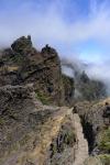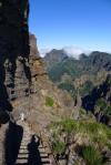 Aunque existe una ruta muy sencilla para acceder al pico más alto de Madeira (y 3º más alto dePortugal), la vereda de Achada do Teixeira, si se tiene algo de experiencia en montaña y una mediana forma física, solo puedo recomendar la impresionante ruta desde el pico Areeiro. De hecho creo que es uno de los recorridos más espectaculares que he hecho nunca. Se sale del pico Areeiro, 3º pico más alto de Madeira y se bordea el pico Torres, 2º pico más alto. Saliendo de 1818m y llegando a 1862m se hace un desnivel total de más de 1100, así que os podéis imaginar el subeybaja constante. El recorrido no tiene pérdida, ya que el camino está acondicionado en la misma roca volcánica con escaleras y túneles (aconsejable llevar un frontal) y no es posible salirse, y algunos cruces están bien señalizados.